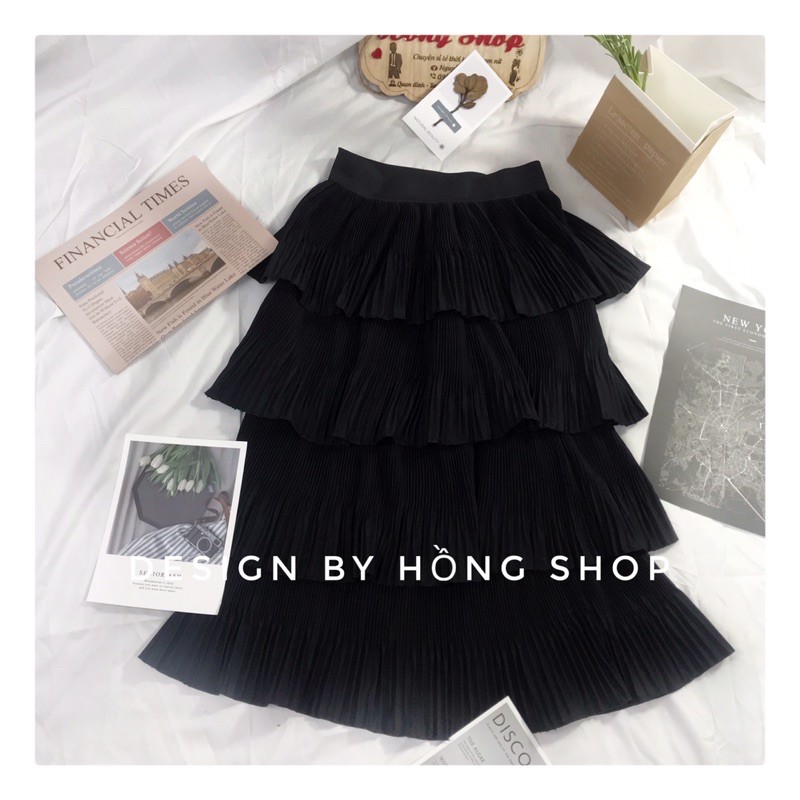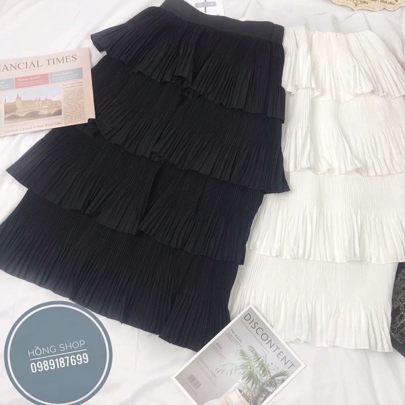Chân váy dài 4 tầng ulzzang công sở hàn quốc vintage dài qua gối lưng cao dáng xòe midi màu Đen/Trắng Freesize free ship