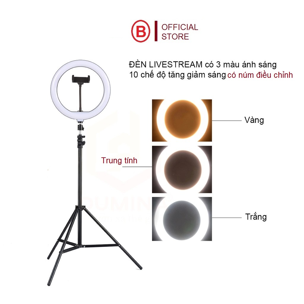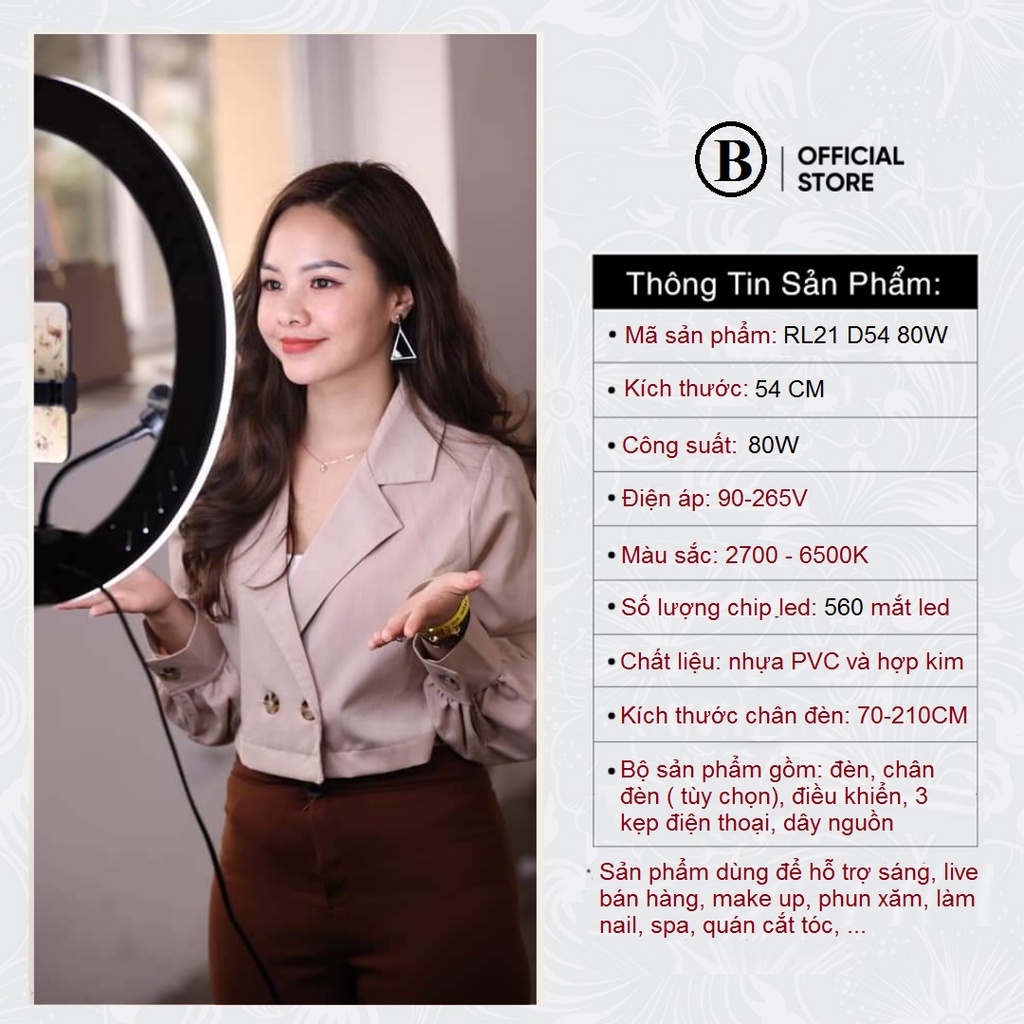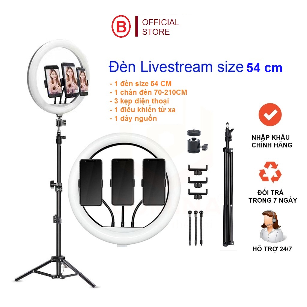 Đèn livestream bán hàng cao cấp siêu sáng size 54cm chân 2m1 hỗ trợ sáng free ship