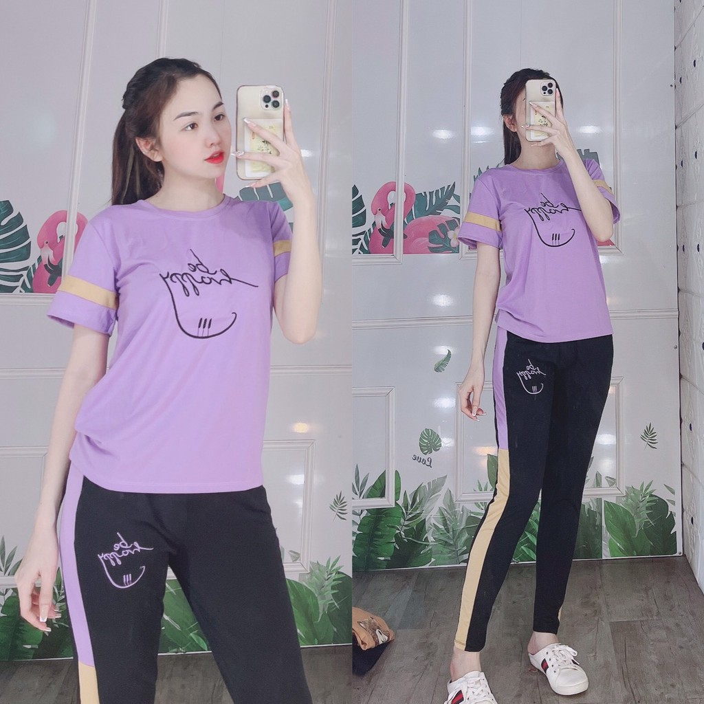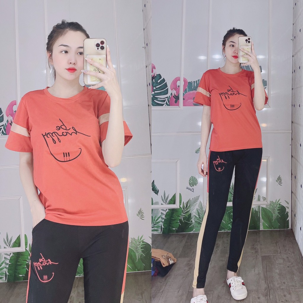 [Size 43-85kg]-Bộ mặc nhà thun thêu Be Happy, bộ quần dài giá tốt free ship
